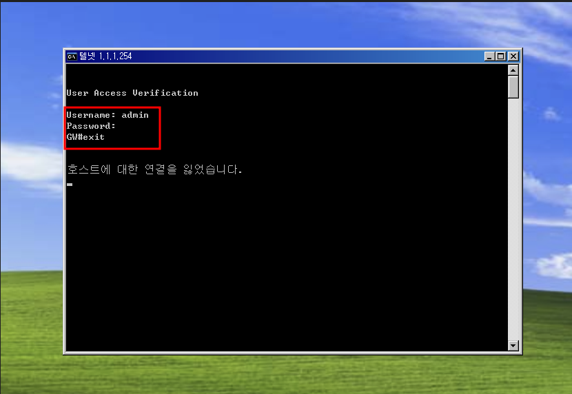 arp-spoofing 공격 당한 상태에서 GW에 telnet을 열어주고 telnet 접근을 한다.