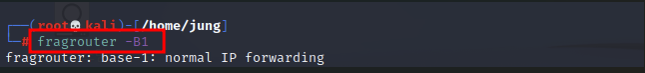 Kali PC가 패킷을 포워딩하기 위해 fragrouter를 실행해준다