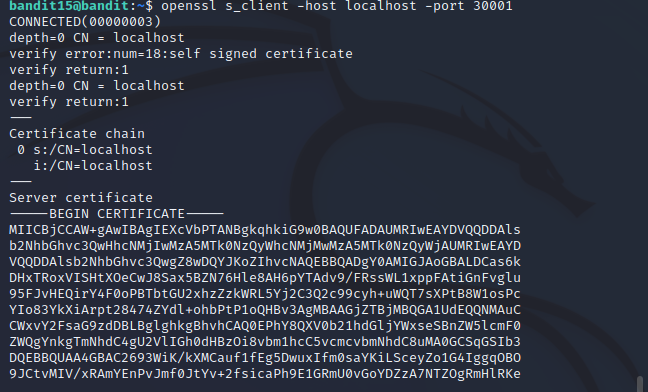 SSL 암호화를 이용하여 localhost의 포트 30001에 현재 레벨의 암호를 적으면 다음 레벨의 PW를 준다고한다.