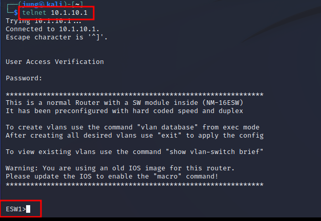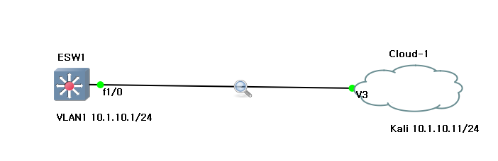 kali에 hping3를 이용하여 source address를 랜덤으로 바꿔가면 스위치에 vlan주소인 10.1.10.1로 패킷을 23번 포트(telnet)으로 flooding 한다.
