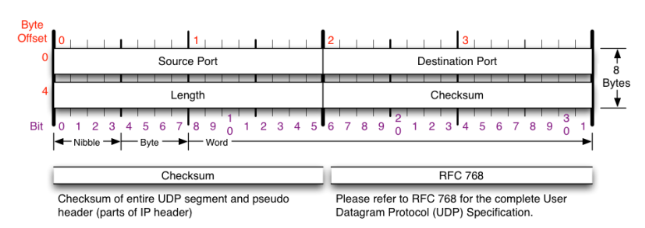 - 전송 프로토콜 중 하나로 데이터의 빠른 전송에 초점을 맞춘 전송 프로토콜로 신뢰성 있는 데이터 전송을 보장하지 않음