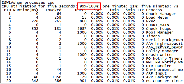 ESW - 공격후 show processed cpu